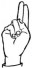 На ћирилици написано ЈЕЛИСАВЕТА КЛИНЦОВ састоји се из 17 слова [?]. Исписано ћириличном једноручном азбуком за глувонеме: